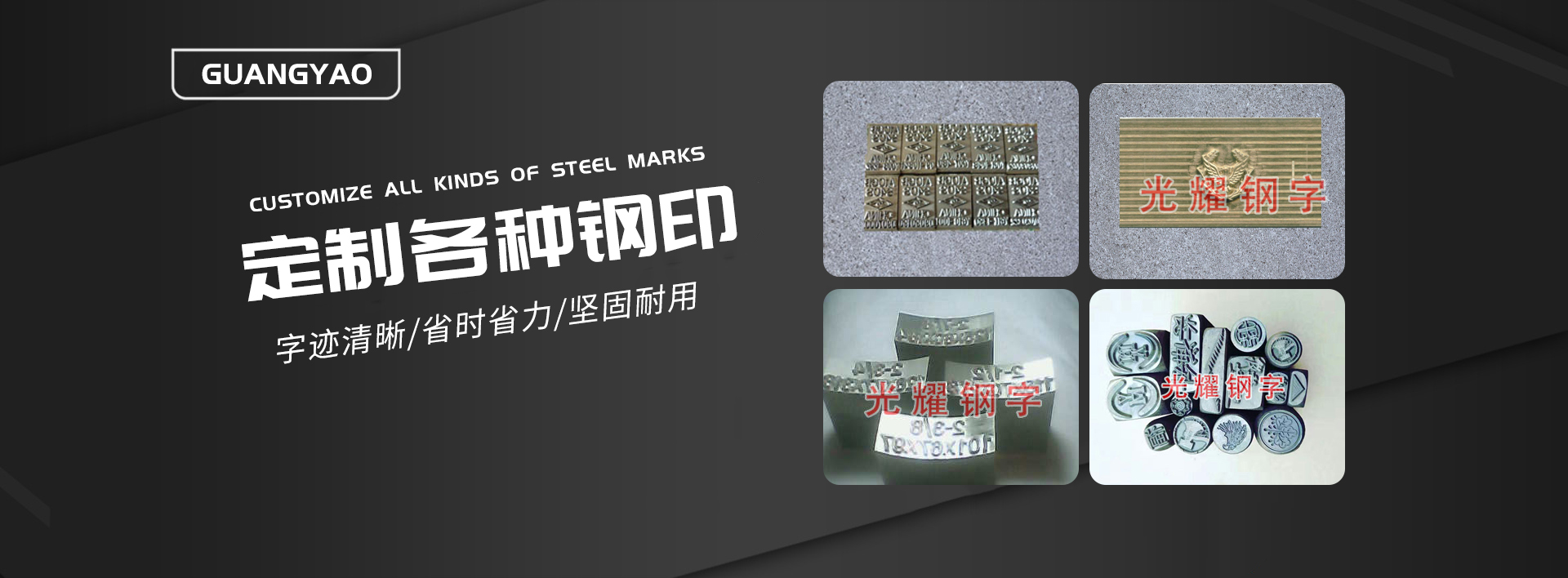 齊河縣光耀鋼字雕刻有限公司位于山東省齊河縣經濟開發區,地理位置,京福,濟邯,青銀高速,京滬鐵路慣穿全縣,距省會濟南20公里,交通便利。主要產品:焊工鋼印、鐵路鋼印、自行車檢驗鋼印、沖頭、用于機械、配件制造行業配套用的鋼字頭:如軸瓦、火花塞、活塞 、活塞環、油泵、油嘴、軸承、鏈條、鏈輪、自行車飛輪、卷煙廠、食品廠,以及棉花加工業、紡織、印染業、大型軋鋼廠、公路、通信線路用樁號警示牌等。主要生產材料:鐵板、銅板、鋁塑板、厚度0.2MM--0.5MM的漏板。